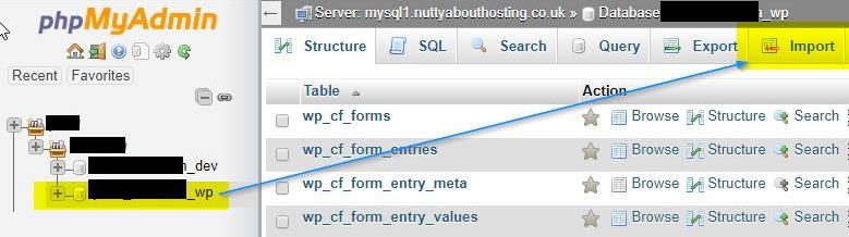 1. Login to https://phpmyadmin.nuttyabouthosting.co.uk/ using your MySQL database login details. alaternatively you can click 'Browse Database' in the control panel under the MySQL area.